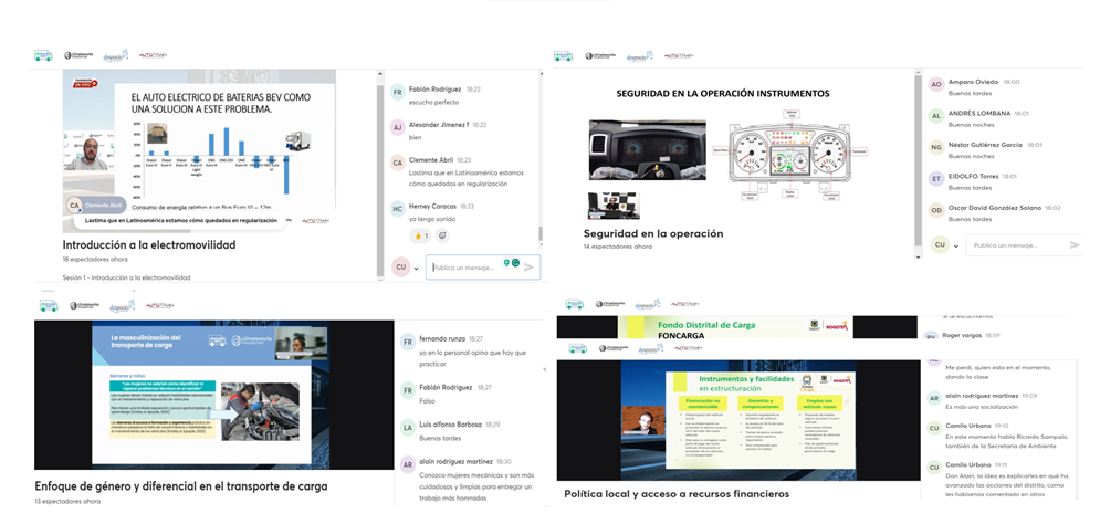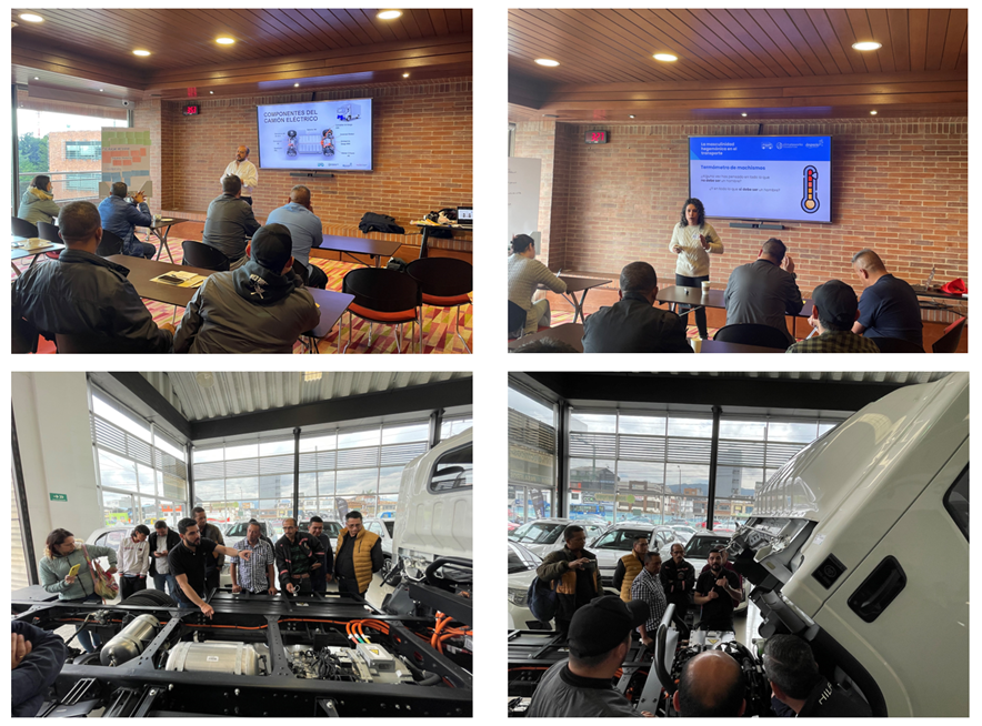 El programa, con una duración de siete semanas y un total de 29 horas de aprendizaje, integró módulos virtuales y sesiones presenciales, comprendiendo clases teóricas, talleres y visitas a fabricantes de vehículos eléctricos de carga. Estos módulos, estructurados en cinco secciones, abordaron temas que comprendieron los principios fundamentales de la electromovilidad, hasta aspectos prácticos como las diferencias operativas entre camiones diésel y eléctricos, la gestión de costos en la operación, oportunidades de financiación pública y privada, prácticas de mantenimiento, género, inclusión y política local de la regulación medioambiental.